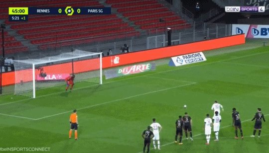 45+3'库尔扎瓦在禁区内被踢倒,内马尔的点球命中左下角,巴黎1比0领先!